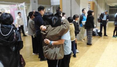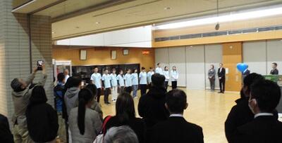 体育館を出た後、1階の廊下を歩いていると、校歌の前奏に続いて歌声が聞こえてきました。