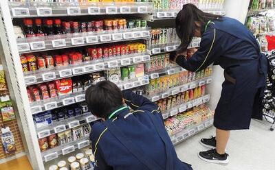 続いては、スーパーの”いなげや”さんです。消費期限を確認し、商品を棚の前に出す作業中でした。