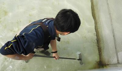 本日取り組んでいたお仕事は、その生け簀の掃除です。