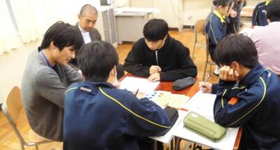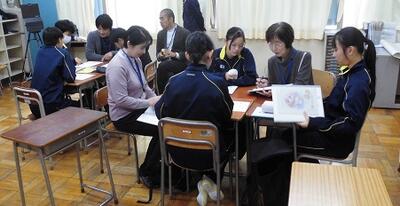 実際の授業では、生徒のグループの中に議員の皆さんも一緒に加わりました。