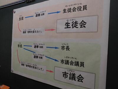 3年生たちは、3年後に成人となり選挙権をもちますので…。