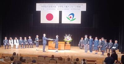 応募者1147人の中から、市内の6公立中と私立中の合計7校、14名の代表者が発表しました。