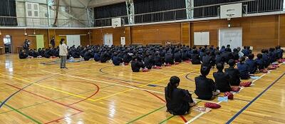 体育館では、1年生が集まっていました。