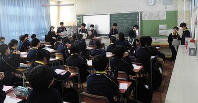 校内をまわると、1年生の社会科の授業が面白そうでした。