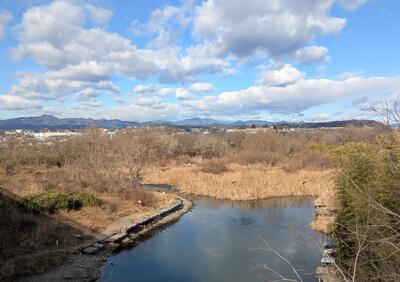 同じように寒かった日、あきる野市から福生市へ渡る睦橋の下にある天然の釣り堀?が凍っていました。