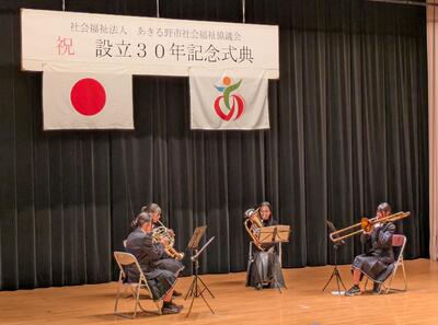 昨日、吹奏楽部が、あきる野市社会福祉協議会設立30周年記念式典において演奏を披露させていただきました。