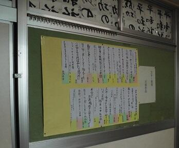 4階にある1年生の教室前の廊下には、スキー移動教室の川柳が掲示されています。