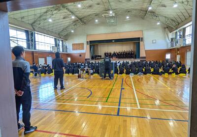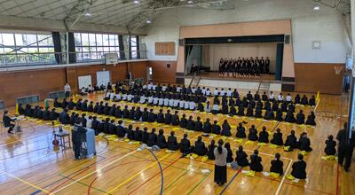 校内では3年生が全クラス集まり、合唱コンクールの学年練習に取り組んでいました。