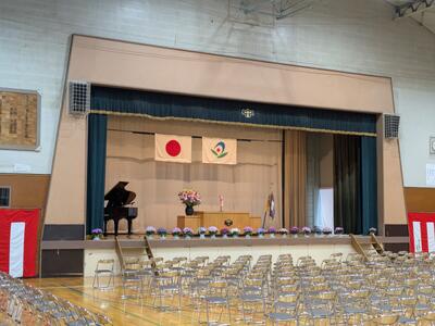 体育館内だけでなく、東門に看板を設置し、準備万端整いました。