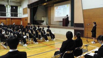 5・6時間目、体育館に1年生全員と2・3年生の代表生徒が集まっていました。