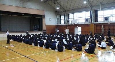私が体育館をのぞいたときは、中学校卒業後の進路についての話がされていました。