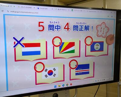 まずは、様々な国旗を見て、国名を当てる難しい問題に取り組みました。